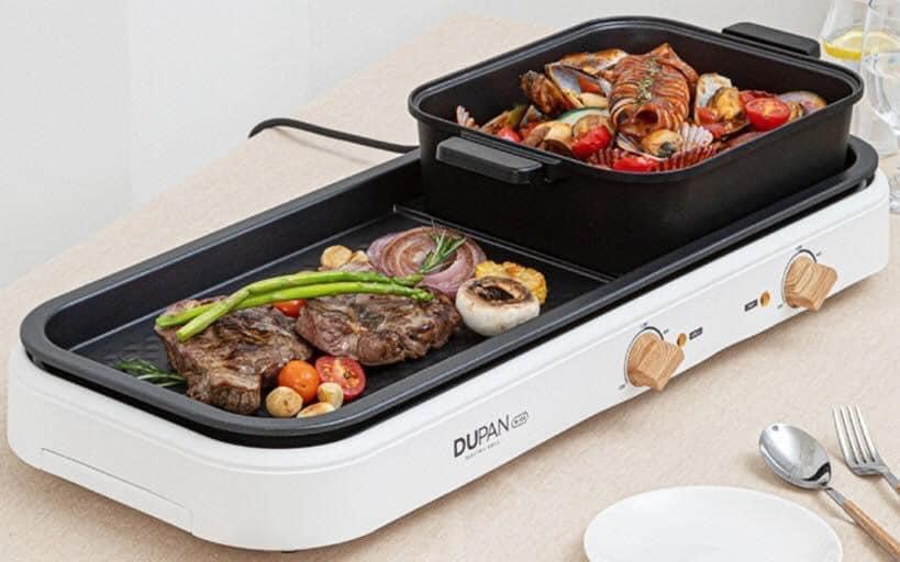 Lẩu nướng Dupan Domus DP-2200 2200W 2 in 1 (mẫu mới 2022) – Nồi nhỏ gọn, thiết kế hình chữ nhật để trên bàn ăn cực xinh, dễ dàng di chuyển , dễ mang ra ngoài – Vừa làm lẩu vừa làm nướng, có thể làm được nhiều món không khác gì ăn ở nhà hàng. – Không giống những nồi khác, Bếp lẩu nướng DUPAN có thể điều chỉnh nhiệt độ cho từng bên: nướng, lẩu. – Nấu đồ nhanh ở nhiệt độ cao nhờ công suất 2200W, vẫn giữ được chất dinh dưỡng trong thức ăn. – Với thiết kế tháo rời (nồi lẩu, vỉ nướng có thể tách rời) thuận tiện cho việc vệ sinh nồi. – Chảo nướng có những đường gồ lên giảm việc bám, dính thức ăn vào chảo. – Phần dầu thừa khi nướng sẽ qua chỗ thoát dầu xuống khay đựng dầu. – Bếp 2in1 cực tiện dụng tặng kèm túi xách để đựng nồi khi mang ra ngoài hay khi đi dã ngoại,… 🌷 Chi tiết sản phẩm: – Bếp chính – Nắp nồi. – Nồi vuông – Chảo nướng hình chữ nhật. – 2 Khay chứa dầu. – Dây cắm điện có thể tháo rời. – Túi đựng nồi.