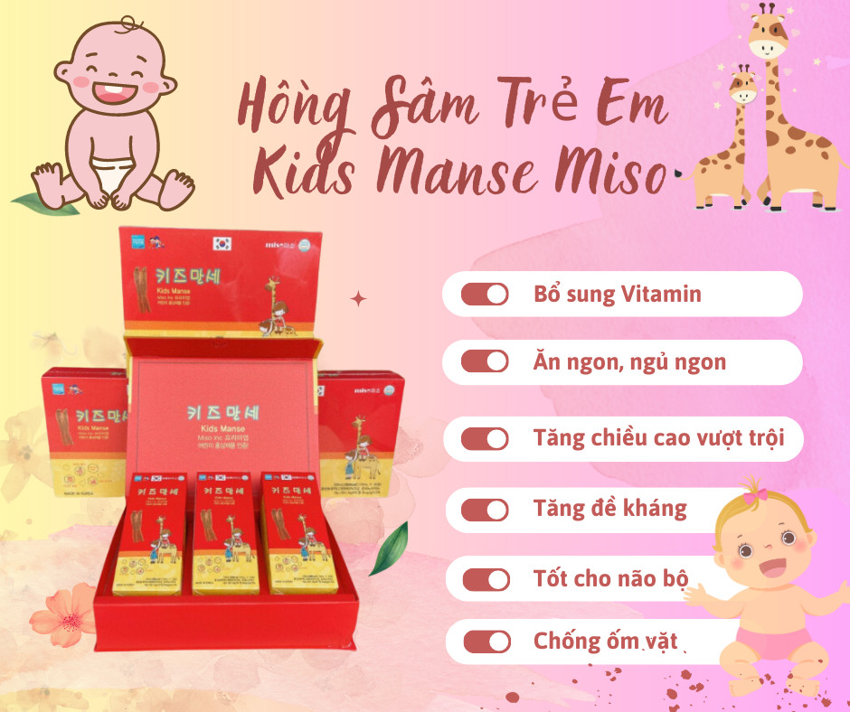 :b Sử dụng nước Hồng Sâm Kids Manse Miso Inc, các bậc cha mẹ sẽ không còn phải lo lắng chuyện con cái ốm vặt, lười ăn… mà trẻ sẽ phát triển tốt cả về thể chất và tinh thần.